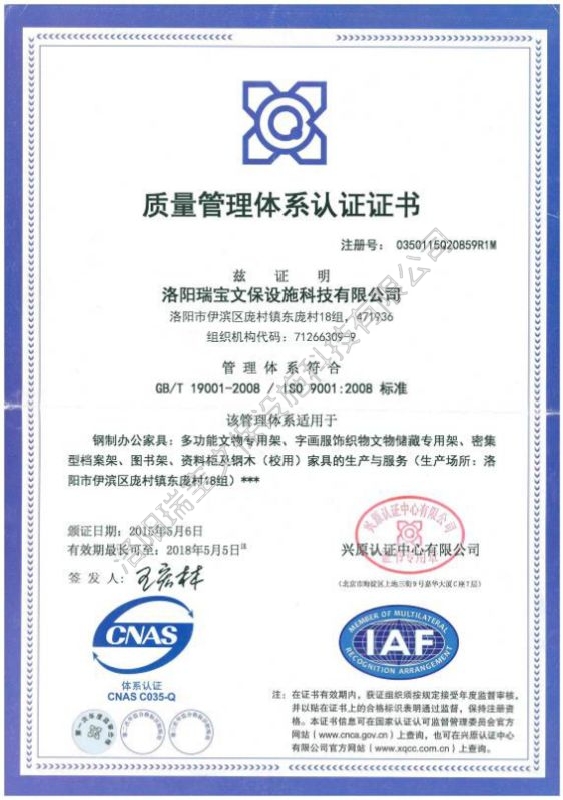 質(zhì)量管理體系認(rèn)證證書(shū)